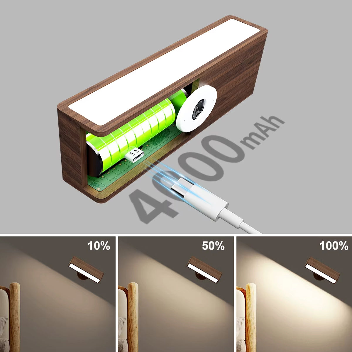 Die Pinoc Wall Eye ist mit einem kraftvollen 4000mAh Akku ausgestattet. Dadurch überzeugt sie mit langen Leuchtzeiten von bis zu 30 Stunden in kleinster Dimmstufe (10%). Dank des Type-C Schnellladeanschlusses ist sie in nur vier Stunden voll aufgeladen – für maximal-kabellose Flexibilität ohne lange Wartezeiten!